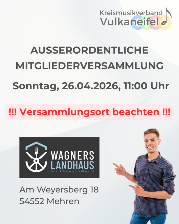 Einladung zur außerordentlichen Mitgliederversammlung des Kreismusikverband Vulkaneifel e.V.
